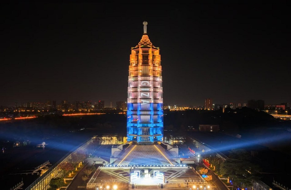 الجيزة في الصين.. إضاءة برج نانجينغ باسم المحافظة ترويجًا للمتحف الكبير والاستثمار